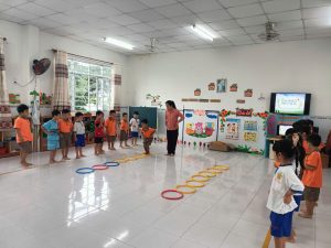 Nâng cao sức khỏe và kỹ năng vận động cho bé Lớp Lá 5-6 tuổi qua HĐ PTTC “Bật Liên Tục Qua 5 Vòng”
