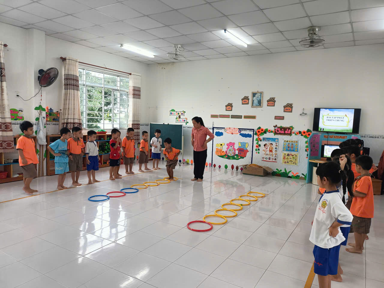 Nâng Cao Sức Khỏe và Kỹ Năng Vận Động Cho Bé Lớp Lá 5-6 Tuổi Qua HĐ PTTC “Bật Liên Tục Qua 5 Vòng” 🏃♀️ Phát triển thể chất cho trẻ luôn là một trong những ưu