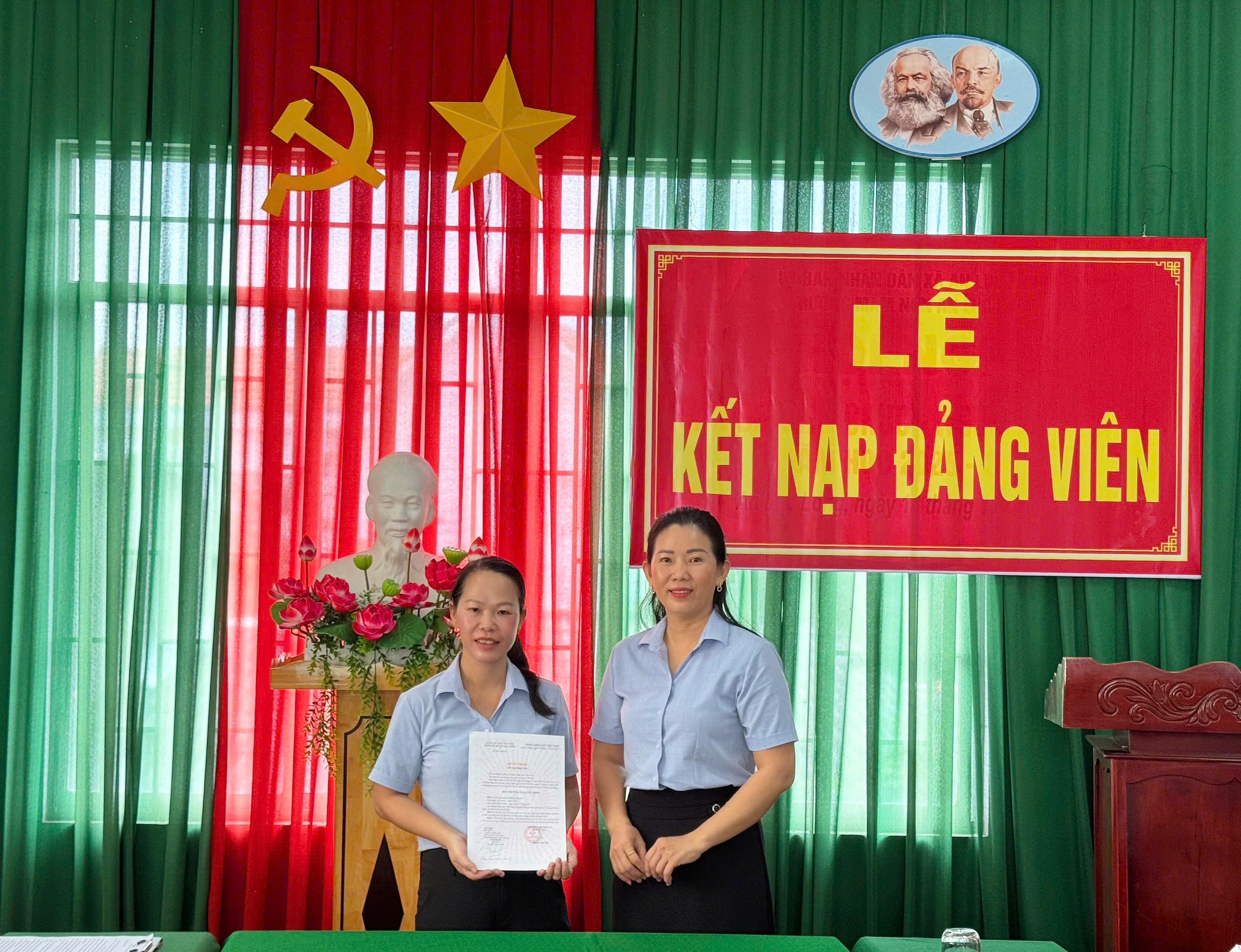 Vào lúc 11 giờ 30 phút ngày 10/11/2025, Chi bộ Trường Mầm non An Lục Long trang trọng tổ chức Lễ kết nạp Đảng viên mới cho quần chúng ưu tú Lê Thị Hà. Buổi lễ diễn ra trong không khí trang nghiêm, đúng quy định Điều lệ Đảng, thể hiện quyết tâm của Chi bộ trong công tác xây dựng Đảng, bồi dưỡng và phát