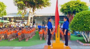 Trường MN An Lục Long ” Chào cờ đầu tuần kết hợp mô hình sinh hoạt kể chuyện Hồ Chí Minh”