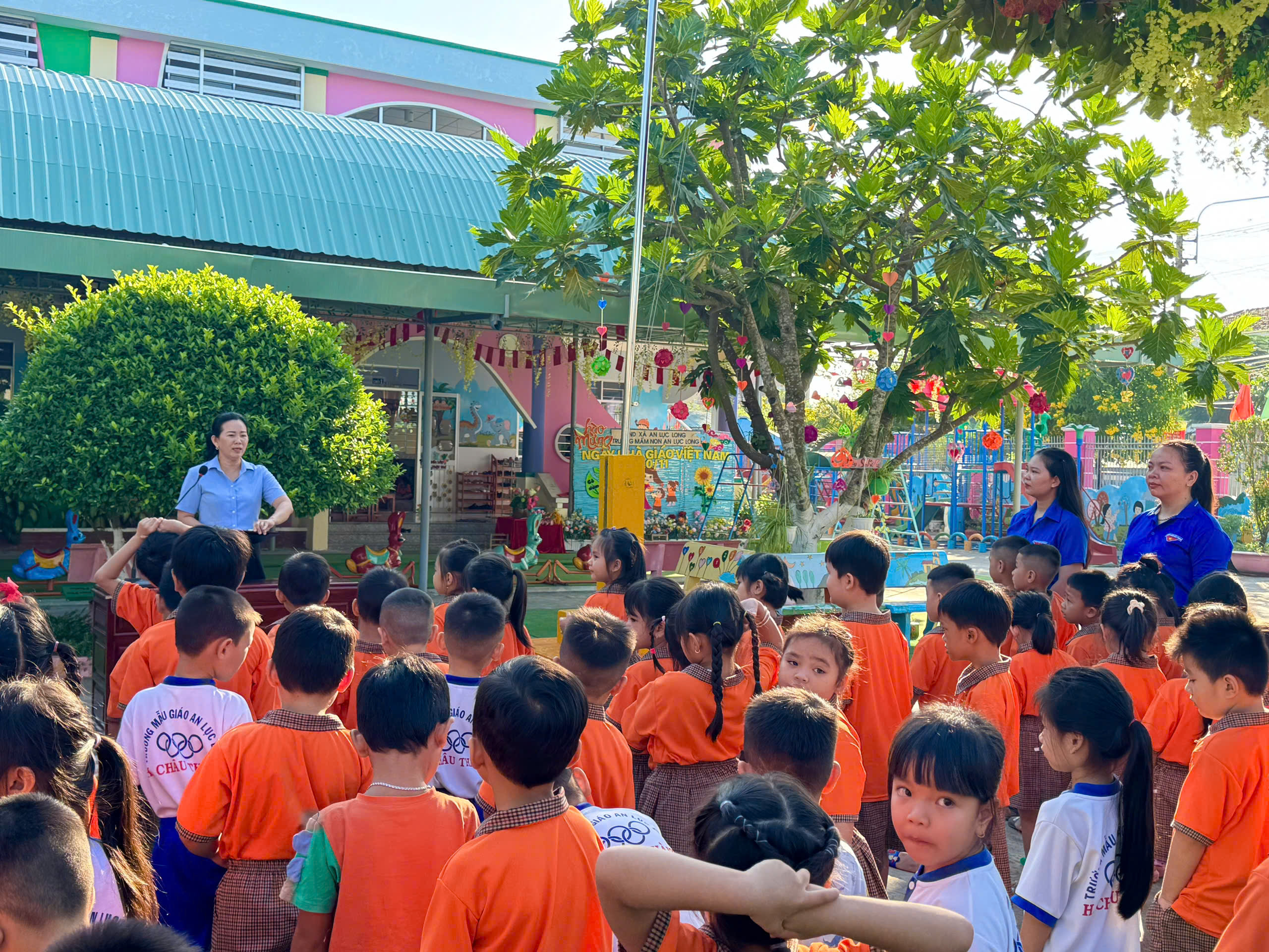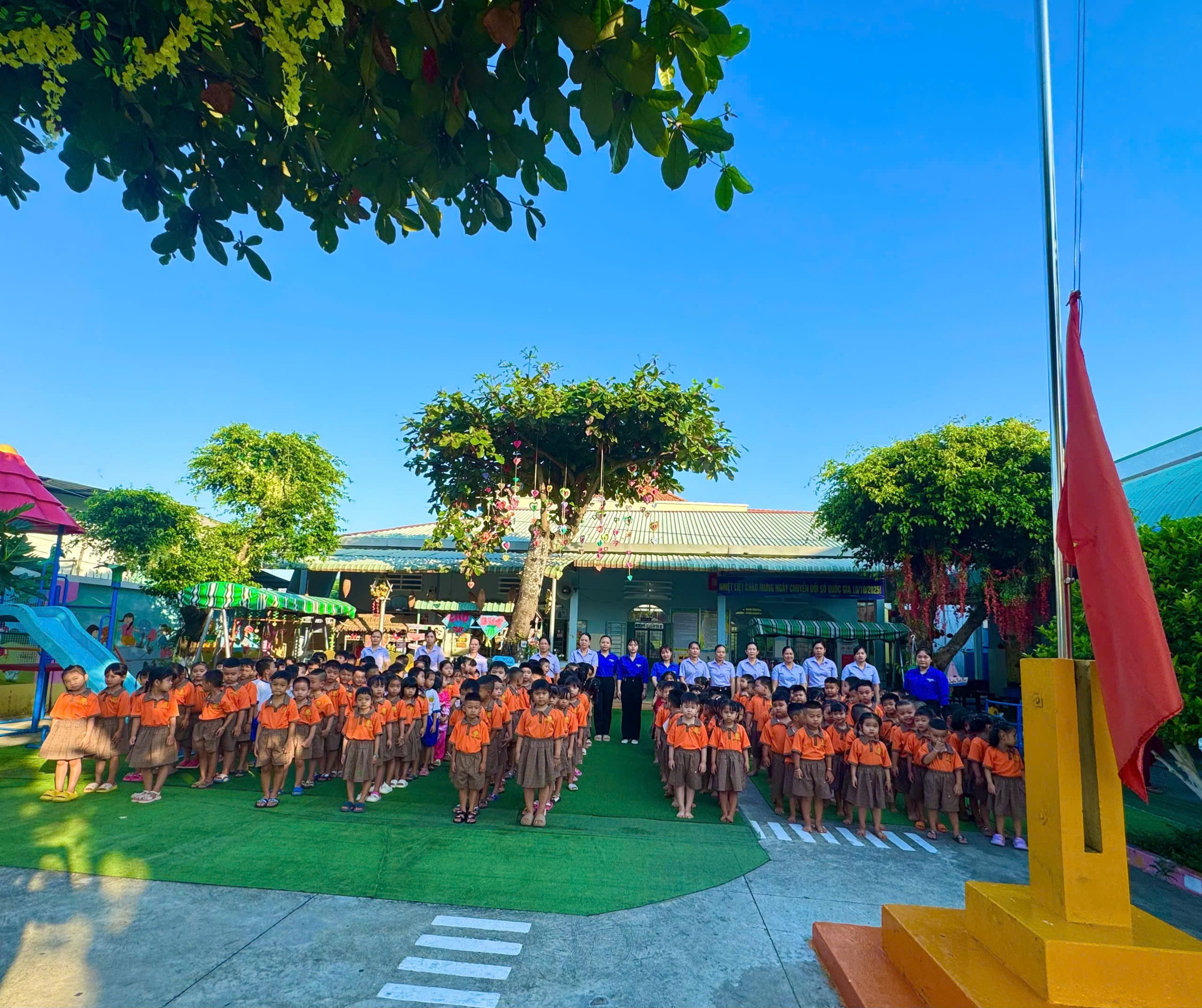 Sáng thứ Hai, ngày 01 tháng 12 năm 2025, lúc 7 giờ 00 phút, Trường Mầm non An Lục Long đã tổ chức một buổi sinh hoạt đầu tuần đầy ý nghĩa, đánh dấu sự khởi đầu năng động cho một tuần học mới. Toàn thể cán bộ, giáo viên, nhân viên và các cháu học sinh đã cùng nhau tham dự Lễ Chào cờ trang nghiêm, lắng nghe câu chuyện về Bác Hồ và tham gia hoạt động thể dục sáng sôi nổi.