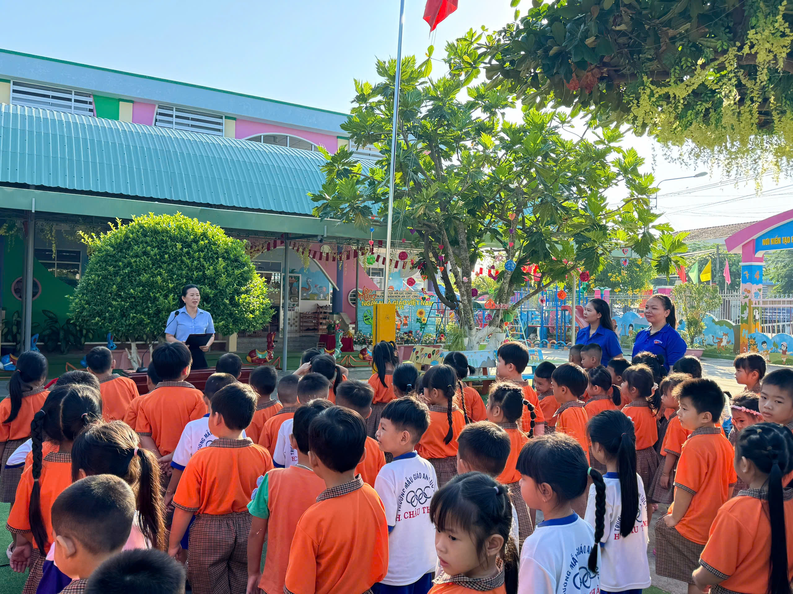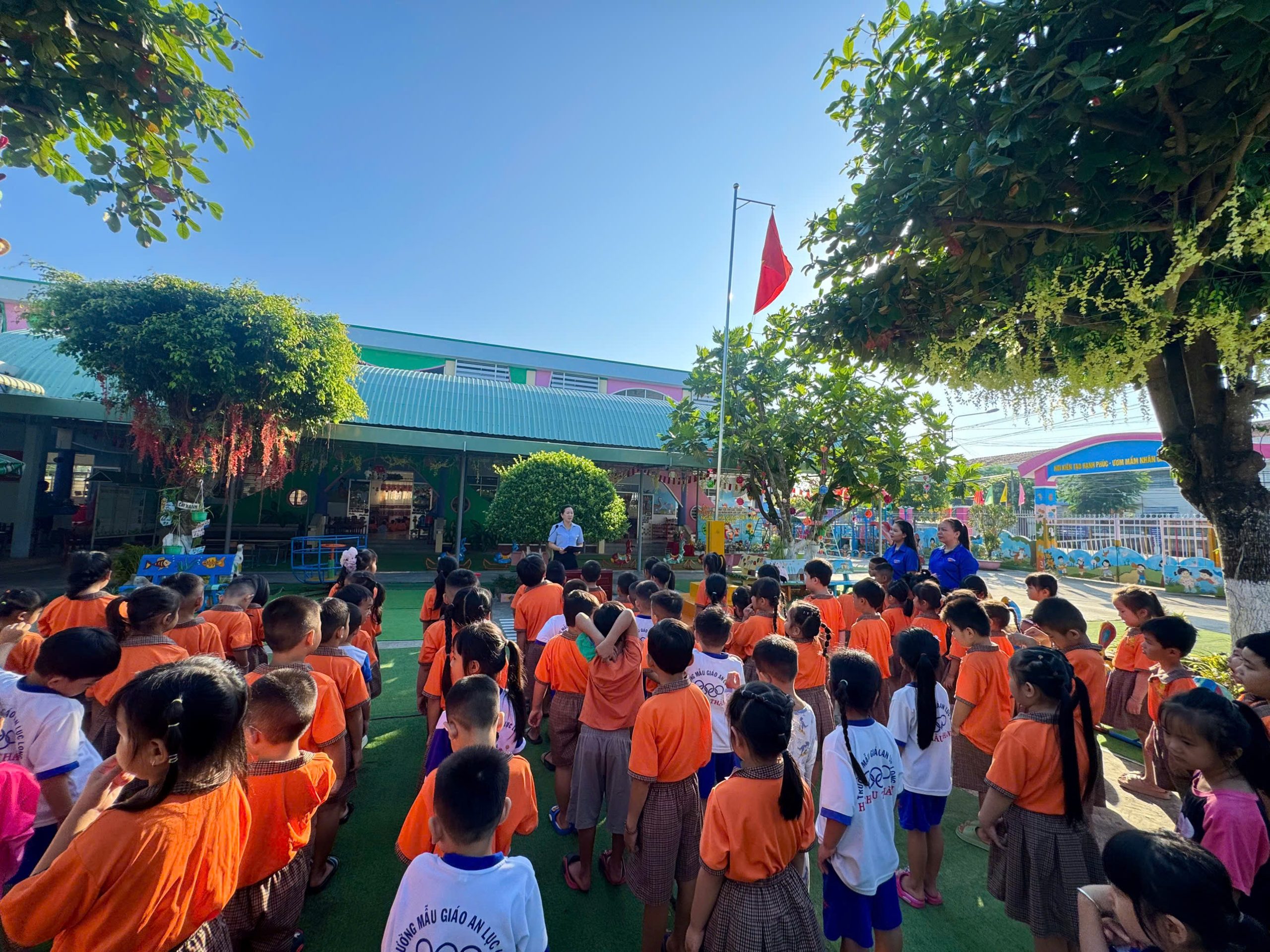 Sáng thứ Hai, ngày 01 tháng 12 năm 2025, lúc 7 giờ 00 phút, Trường Mầm non An Lục Long đã tổ chức một buổi sinh hoạt đầu tuần đầy ý nghĩa, đánh dấu sự khởi đầu năng động cho một tuần học mới. Toàn thể cán bộ, giáo viên, nhân viên và các cháu học sinh đã cùng nhau tham dự Lễ Chào cờ trang nghiêm, lắng nghe câu chuyện về Bác Hồ và tham gia hoạt động thể dục sáng sôi nổi.
